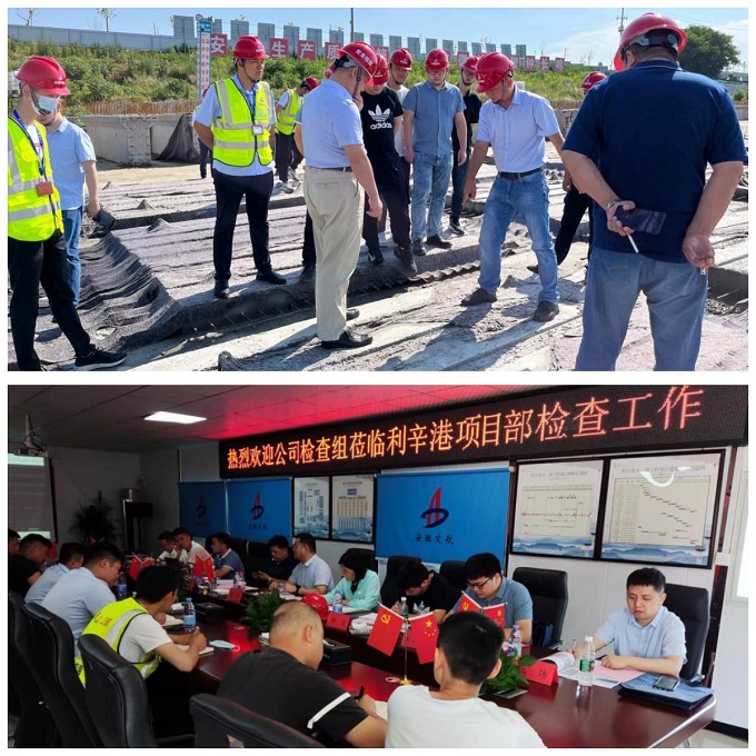 6月14日,公司党委委员、副总经理张琼率队赴利辛港项目部,开展2022年第二季度工程项目过程管理考核暨质量专项联合检查工作。