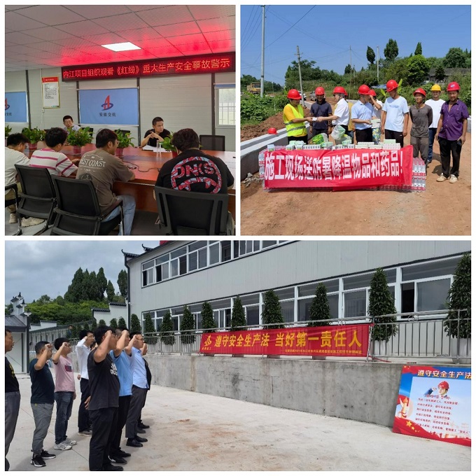 加强安全管理,增强安全意识。项目部全面落实安全生产责任制度,严格实行领导带班制度,加强生产过程中安全隐患排查工作,截至目前项目未发生安全事故。依据项目制定的安全检查制度,开展了日常巡查、定期检查、专项巡查、节前专项检查及节后复工专项检查等。今年以来项目部累计开展安全进场教育145人次;安全技术交底25次;共下发37份安全隐患整改通知单,完成86条安全隐患的整改工作;开展“安全警示日”、“安全生产月”、“防灾减灾”等专题教育以及系列活动。项目部调整施工时间错开高温时间段,在施工现场配备绿豆、防暑降温药品,采取一系列措施预防工人中暑,有效应对夏季高温天气。