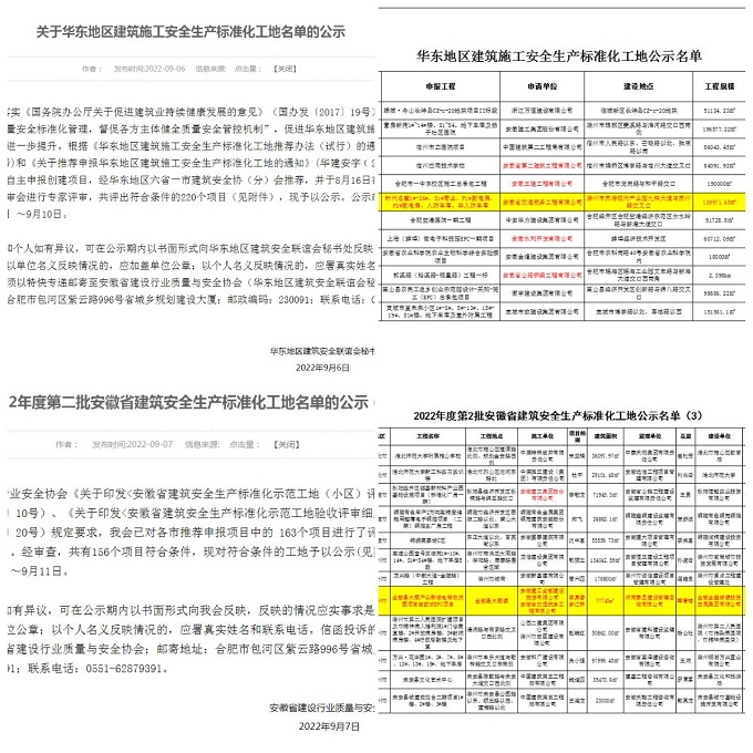 近日,从安徽省建筑行业质量与安全协会网站获悉,由安徽交航公司承建的滁州时代庄园、大墅产业园项目分获“华东地区建筑施工安全生产标准化工地”、“安徽省建筑安全生产标准化工地”荣誉称号。