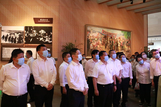 为庆祝中国共产党成立100周年,贯彻落实党史学习教育工作要求,5月11日下午,安徽交航机关党支部、引江济淮项目党支部、联合开展党史学习教育主题党日活动。公司领导班子成员,机关全体党员、引江济淮项目全体党员以及职工群众共120余人前往渡江战役纪念馆,重温入党誓词,缅怀革命先烈丰功伟绩,聆听党委书记、董事长、总经理方申柱讲党课。