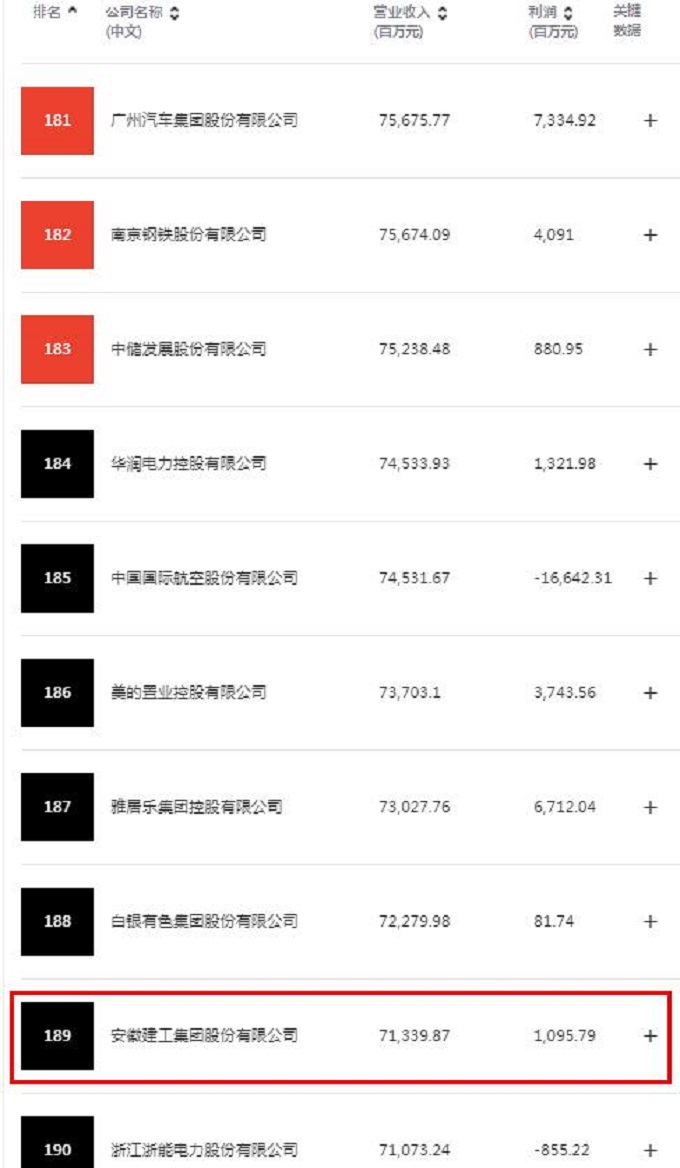 日前,在考量了全球范围内最大的中国上市企业在过去一年的业绩和成就基础上,由《财富》(中文版)与中金财富合作编制的2022年《财富》中国500强排行榜正式发布。安徽建工集团股份有限公司位列189位,首次进入前200强,较上年度排名跃升12位。