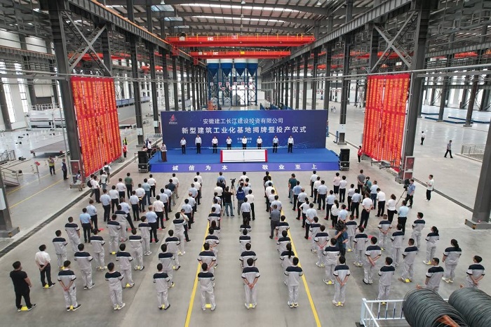 6月18日上午,安徽建工长江建设投资有限公司新型建筑工业化基地揭牌暨投产仪式在铜陵市义安区举行,铜陵市委书记丁纯和建工控股党委书记、董事长赵时运共同为基地投产推杆启动。铜陵市委常委、市委秘书长胡启书,副市长汪发进,建工股份党委副书记、总经理、董事李有贵,义安区委书记姚贵平,区委副书记、区长方小雄,铜陵市建投党委副书记、总经理张明,安建总承包党委书记、总经理、长江建投董事长张冲等出席仪式。汪发进、李有贵在仪式上分别致辞,张冲介绍长江建投及新型建筑工业化基地情况。安建总承包副总经理、长江建投总经理陈道兵主持仪式。