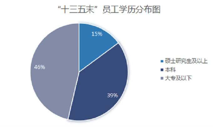 人力资源结构持续完善。“十三五”末,全院共有员工1146人。从学历分布来看,硕士研究生及以上学历占比14.8%,本科学历占比38.8%,大专及以下学历占比46.4%。从职称分布来看,正高级职称占比2.6%,副高级职称占比16.2%,中级职称占比29.6%,初级职称占比30.5%。从年龄分布来看,35岁及以下占比55.4%,36-45岁占比24.0%,46-55岁占比14.7%,56岁及以上占比5.9%。