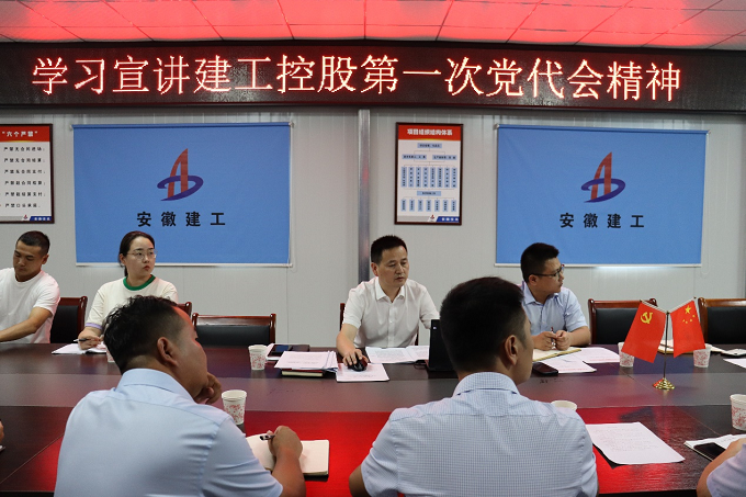 7月19日,公司党委副书记、总经理杜海峰赴联系点安建品创公司党支部宣讲建工控股第一次党代会精神