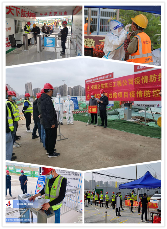 “请大家戴好口罩有序排队,前后人员保持一米距离。”“您好,出示您的安康码和行程卡,并接受体温检测。”日前,利辛县邵渡口大桥项目部联合邵渡口村委会,集中组织28名管理人员及120名劳务班组作业人员依次进行核酸检测、体温测量和信息登记。二公司、三公司、亳州利辛港区项目部、滁州项目部等基层单位及时召开专题会议,按照公司党委要求,积极落实疫情防控措施、制定抗疫方案,对工作人员进行常态化体温检测、定期核酸检测、两码联查登记、人员进出管控,并积极加强防疫宣传、定期消杀及物资储备……多措并举阻断疫情扩散,确保疫情防控措施落实到位,强化疫情源头防控。