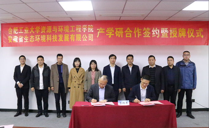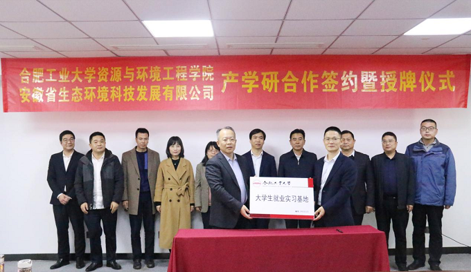 11月18日下午,合肥工业大学资源与环境工程学院党委书记南国君一行到安徽交航开展与安徽省生态环境科技发展有限公司产学研合作签约暨授牌仪式,并签订就业实习基地协议书。公司党委书记、董事长方申柱、合肥工业大学环境与资源学院院长袁峰代表双方签约并为就业实习基地揭牌,仪式由公司党委委员、副总经理张琼主持。