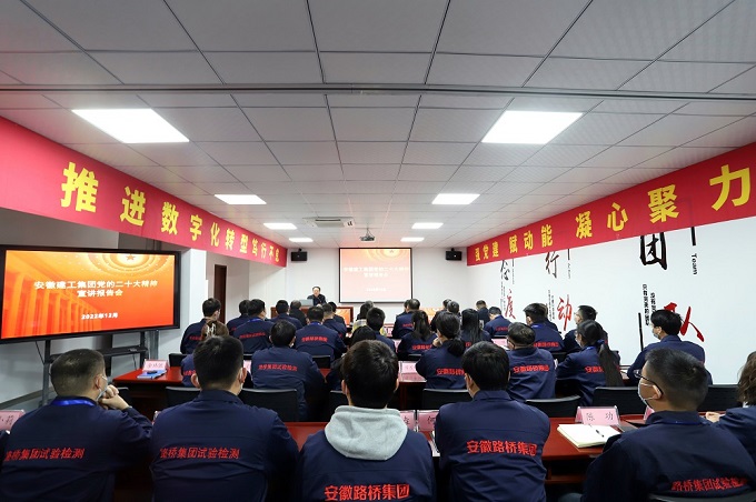 12月12日至13日,建工控股党委副书记、总经理刘家静分别赴安徽路港公司、安徽路桥集团检测公司开展党的二十大精神专题宣讲。