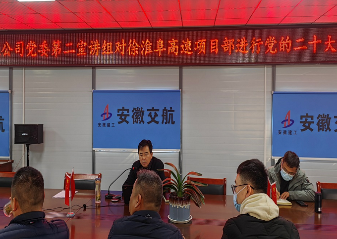 12月15日上午,公司党委副书记、总经理杜海峰赴徐淮阜高速项目部开展党的二十大精神专题宣讲。