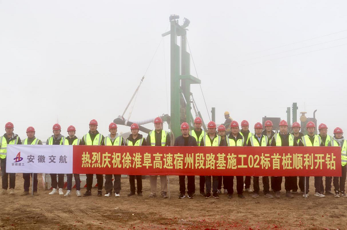 2月24日上午八时许,由安徽交航承建的徐淮阜高速宿州段项目02标首根桩基顺利开钻,标志着项目主体工程建设正式拉开帷幕。