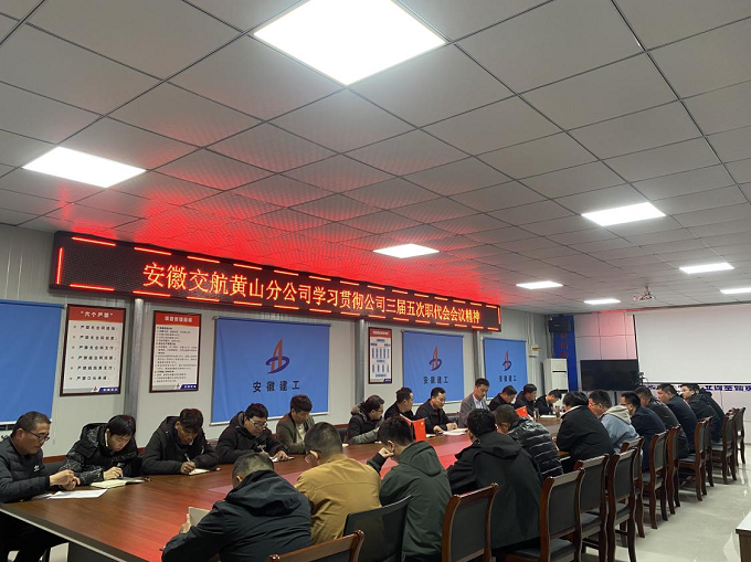 3月3日下午,安徽交航黄山分公司组织学习宣贯集团和公司职代会精神,会议要求全体党员干部职工要提高政治站位,认真贯彻落实两级职代会精神,以实际行动推进安徽交航公司发展步伐。