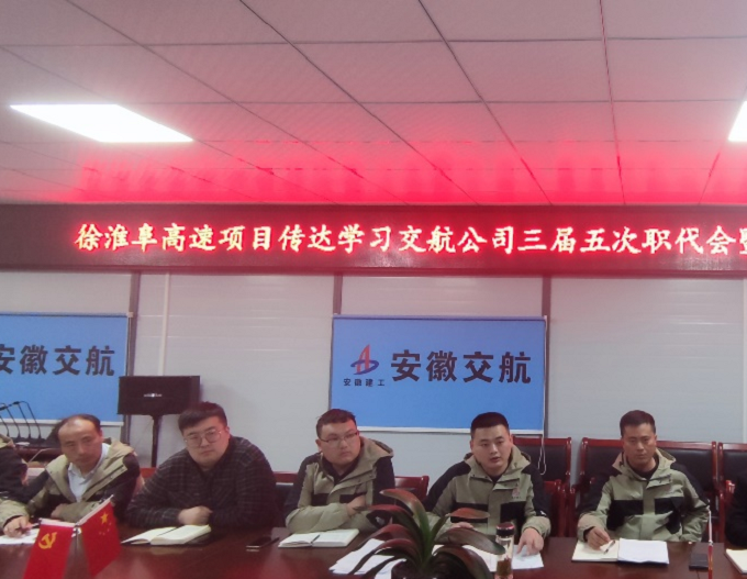 3月3日,徐淮阜高速宿州段02标项目部召开专题会议,传达学习集团和公司职代会精神。会议要求,要全面贯彻落实党的二十大精神及集团党委和公司党委决策部署,做好项目基础管理工作,践行新发展理念,推进高质量发展,努力做好徐淮阜高速项目2023年各项工作。