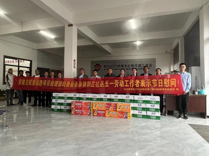 5月3日,萧杨路项目赴萧县圣泉镇郭庄社区开展“五一”劳动节慰问活动,向社区劳动者表示亲切慰问。