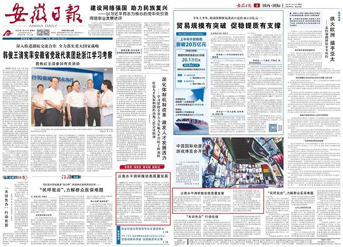 7月14日,安徽日报以《以高水平调研推动高质量发展》为题报道安徽建工集团主题教育开展情况。以下是报道部分内容: