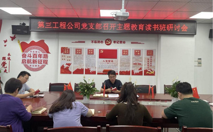 二是提高政治站位压实政治责任。围绕主题教育指定书目,第三工程公司党支部举办主题教育读书班,扎实推进潜心自学、专题领学、分组联学,形成以上率下、整体联动、层层带动的总体效应。党支部先后通过“三会一课”、主题党日等形式向所属党员作了再动员再部署,将政治责任层层压实。