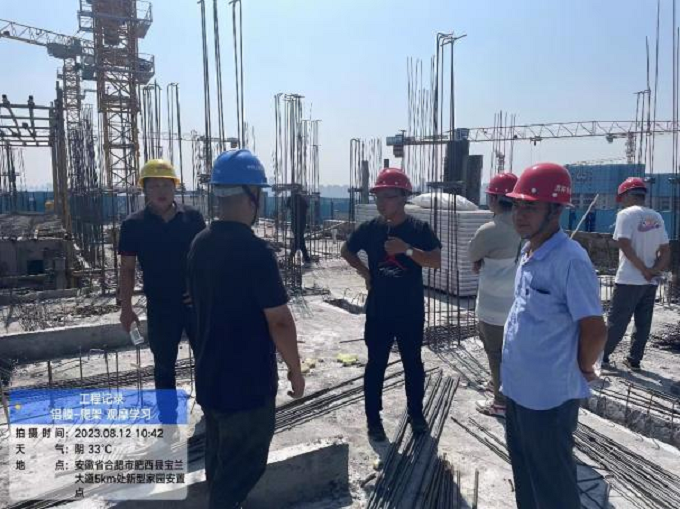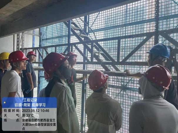 8月12日,项目部组织新员工前往中建五局新型家园项目学习铝模板、爬架等工艺。