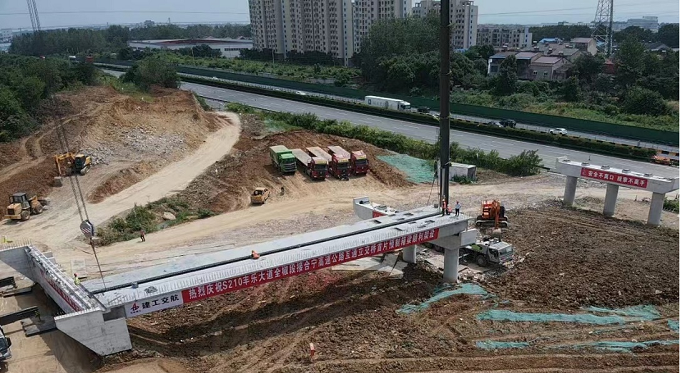 9月5日,由建工交航承建的S210丰乐大道全椒段接合宁高速公路互通立交项目首片预制箱梁顺利架设完成,标志着该项目进入上部结构施工阶段,为项目年底通车冲刺目标打下了良好基础。
