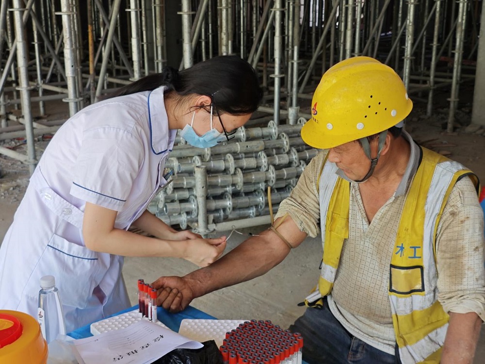 项目管理人员提前布置场地,分批次、分时段组织工人进行检查。此次体检主要包括抽血检查、血压测量、心电图等,对与施工作业息息相关的普遍性疾病隐患进行排查。检查过程中,项目管理人员一边细心地登记信息,一边耐心地与工友交流,根据体检情况,叮嘱他们在工作、生活习惯方面要注意的事项。