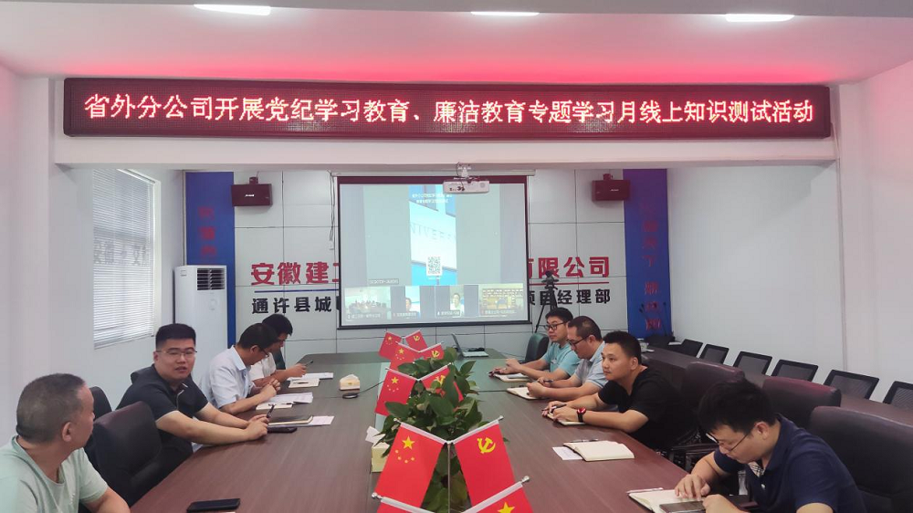 为进一步深化党纪学习教育,增强党员干部廉洁自律意识和拒腐防变能力,结合建工交航公司“廉洁教育专题学习月”活动要求,7月17日上午,省外分公司党支部面向分公司全体干部职工,组织开展“党纪学习、廉洁教育专题学习月”线上知识测试活动,以大家喜闻乐见的形式进行党纪知识教育和普及,推进党纪学习教育走深走实。