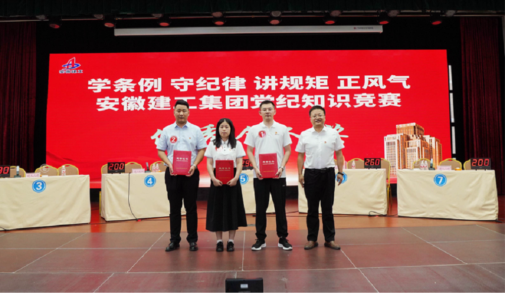 7月17日下午,由安徽建工集团党委主办,安徽建工建设投资集团党委承办的“学条例 守纪律 讲规矩 正风气”党纪知识竞赛落下帷幕,来自集团系统的24支队伍经过预赛、决赛的激烈角逐,由水建分公司的徐鹏、朱奇和全椒建投的吴莹组成的公司代表队荣获二等奖,其中水建分公司朱奇获优秀个人奖。