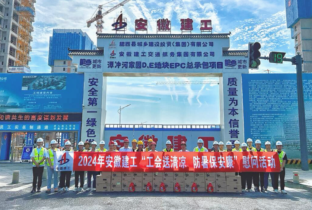 7月24日上午,建工控股党委委员、副总经理陈仁虎,建工控股工会副主席、信访办主任、建工股份副总经理邢应梅赴建工交航潭冲河家园项目开展“工会送清凉、防暑保安康”慰问活动。