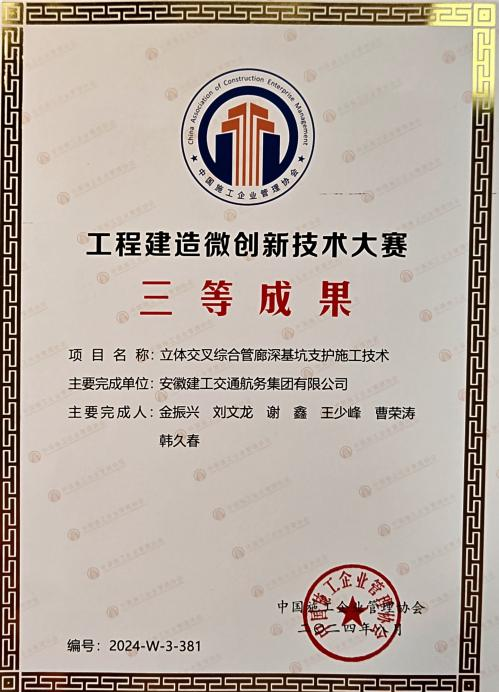 9月9日至11日,中国施工企业管理协会召开了第六届工程建设行业科技创新大会,发布了第四届工程建设行业高推广价值专利大赛、第四届工程建造微创新技术大赛、第二届工程建设企业“数字化、工业化、绿色低碳”施工工法大赛的成果,建工交航斩获多项荣誉。