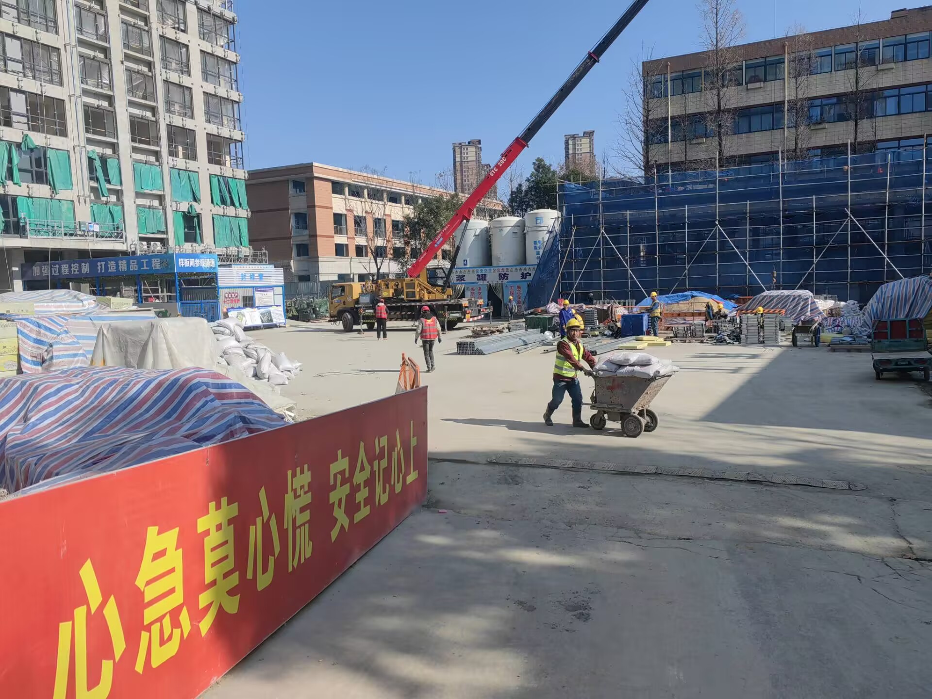 节后复工,安全是第一位的。项目部在复工前对施工现场进行了拉网式排查,重点检查了深基坑、高支模、脚手架等危险性较大的分部分项工程,对发现的安全隐患立即整改,确保施工安全。同时,为了保障施工进度,项目部合理安排施工人员和机械设备,确保各项施工任务按时完成。