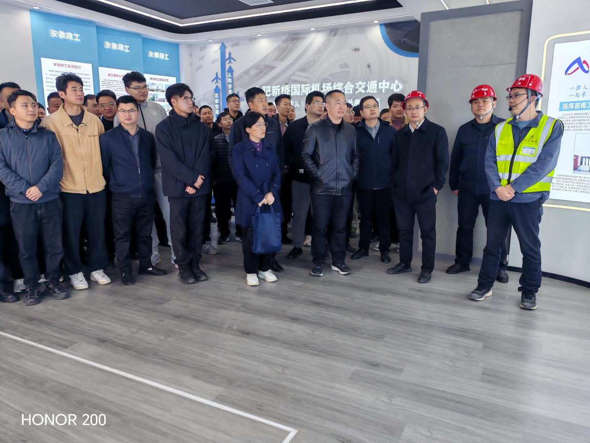 公司一行先后到合肥新桥机场GTC主体工程项目和淮桐高速合肥段-2标项目进行了实地观摩。过程中,现场管理人员详细介绍了项目整体情况、施工重难点及应对措施等内容,重点分享了项目在实施过程中的亮点与管理经验。