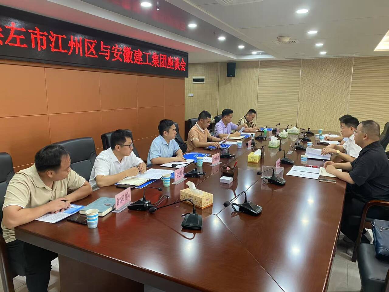 南宁市高新区、崇左市江州区有关部门领导,安徽建工集团广西分公司有关同志参加会谈。