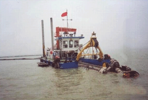 水上施工设备--国内先进的三桩定位抓斗挖泥船