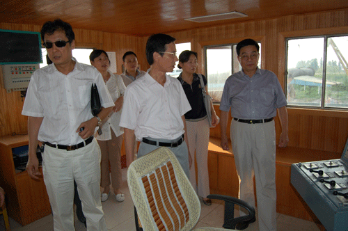 首先,张书记一行听取了项目部关于创建集团公司“党员先锋号工程”的工作汇报,并进行了“党员先锋号工程”授牌仪式。他高度赞扬了项目部全体职工战高温、斗酷暑、坚守岗位、忘我工作的奉献精神,亲手将清凉解暑物品递交到施工人员手中,让这份关爱在亲切的问候中传递。张书记一行接着视察了第七工程处全国“职工书屋”示范点建设,深入了解职工工作和生活情况,对水上艰苦条件下长期坚持工作的广大船员表示亲切的慰问,并与职工进行亲切交谈。他指出,要利用“职工书屋”丰富广大职工的业余生活,切实加强职工队伍的思想建设。这也是他第一次到交航项目部来,交航工作完成情况也得到了集团的赞誉,并就下一步工作提出四点意见:一是项目要出效益,主要靠强化管理;二是要有品牌意识,即通过干一次工程,创造一个品牌,赢得一份市场,在品牌上下功夫;三是要出人才,为项目部、船队创造条件,培养出更多的人才;四是在船队分配制度上要坚持按劳分配的原则,有效益的前提下,适当加大劳动分配的比例,真正做到关怀职工。