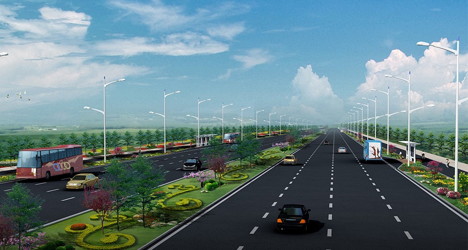 该工程道路总长 9200m,其中,赤铸山 公路长 3300m,宽 60m,设计双向八车道, 连接跨青山河福山大桥,对接芜湖经济开发 区。福山路长 3400m,宽 60m,双向八车道; 创业路长 2500m,宽 50m,双向六车道。